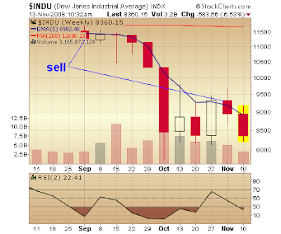 Our 5 EMA trading system strategy shows a sell signal right from the last week in the dow charts. So Any close below 8900 will defenitely invoke a further selloff for the next week. Only a close above 8900 within coming friday will restore buy signal in the weekly charts which looks impossible as of now. Else Probably testing of new lows.